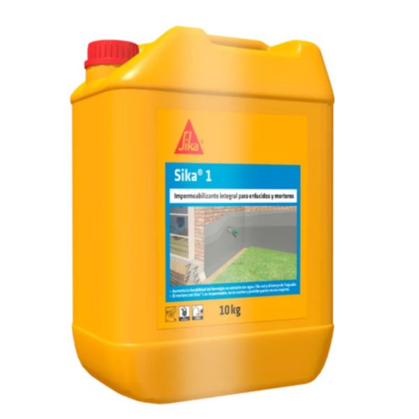 Sika 1 se emplea para obtener morteros impermeables en cimentaciones tanques para agua sótanos techos cisternas muros. Eventualmente en hormigón para mejorar su durabilidad cuando está en contacto con aguas agresivas.