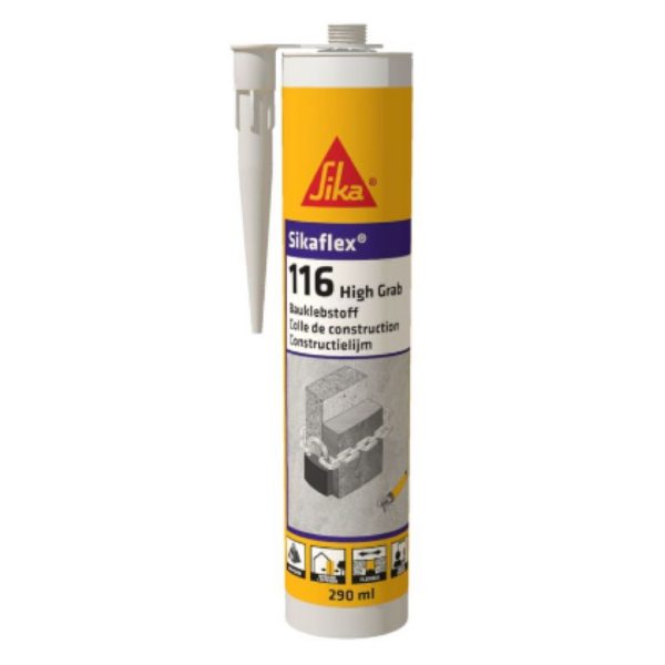 Sikaflex®-116 High Grab es un adhesivo para construcción con alto agarre inicial que pega sobre la mayoría de los materiales de construcción.